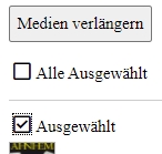 In der Konten-Übersicht ist zu erkennen, welche Medien verlängert werden können und welche nicht. Ein Ausrufezeichen kennzeichnet die Medien, deren Ausleihfrist bereits zweimal verlängert worden ist.